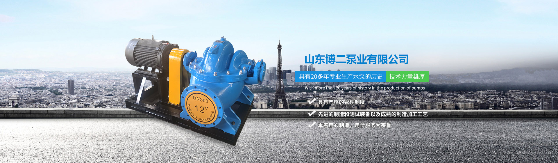 从事各类水泵及附属产品和销售的企业二十几年来,公司在生产、加工、制造和装配等方面积累了丰富实践经验,具有良好经营环境和一批高素质的职工队伍。技术力量雄厚、检测手段完善、产品质量优良、售后服务完善